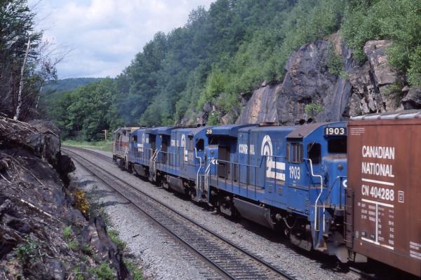 CR 10 brings up the rear of a WB TV Train, Gallitzin PA, 10/82