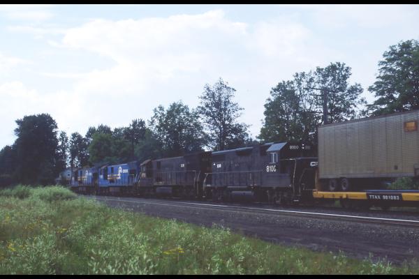CR 8145 leads a train of work equipment to Reading PA for storage in November 1987