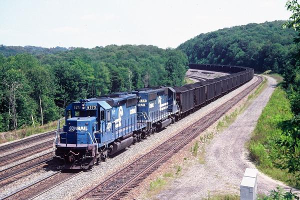 CR 6379 SD40-2 assists Eastbound Conrail UFY-684 at Cresson Pa.