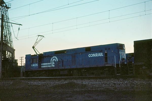 CR 4407 & 4433 are on the "High Line" in front of the now gone powerhouse at 30th St. in Philadelphia, PA. April 4, 1977