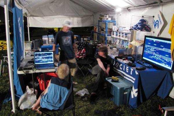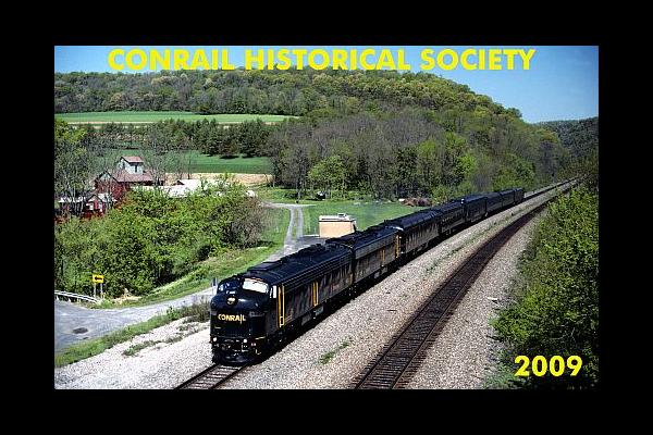 A trio of Conrail autoparts boxcars pass by the CRHS Railthon tent