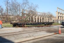 Previous Next Photo By Ed Kapuscinski CRHS President Russ Swinnerton (left) checks out the flatcar, awaiting the arrival of the trucks. Year 2011 Original Date 12/9/11 Conrail Number 715788 Collection CRHS Conrail Photo Archive Contributions