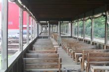 Another view showing the inside of the structure previously built on the car. The car was sold to the B&O Railroad Museum in 2001 and along with 4 others, it was converted into an open passenger car for use during their "Steam Days" and Day Out With Thomas" events.
