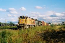 UP B30-7 No. 211 leads a couple of SP units on a westbound Conrail train, most likely ELNP or ELPR, passing Colehour Yard in Hammond, in September 1998. Doug Davidson photo with permission