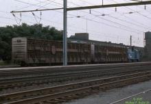 A pair of Cross Brothers stock cars heads west (to the slaughterhouse) through the station at Frankford Junction in Philadelphia, PA.