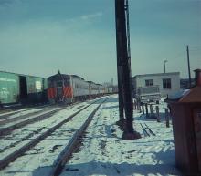A trio of RDG RDC's race past the Abrams yard office on track 2 in January, 1977.