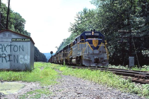 Backing to its display site, the American Freedom Train powered by Ross Rowland's AFT1 (ex-RDG 2101 T-1 4-8-4 ) arrived on former PRR trackage which has long since been removed. Personal reflections: I wonder if the young boy with the audio cassette recorder recording the sounds of AFT1 as it was making various switching moves and the smaller boy ahead of him maintain a lifelong interest in trains. Both would be in their 50's as of this posting date. Also the white Oldsmobile Cutlass sedan with the red roof seen in the background ahead of AFT 1 without a doubt belonged to H.E. (ED) Brouse. This was before I got to know the Brouse brothers, Ed and Scott, now both deceased. H.E.Brouse is listed in CRHS's Our Photographers.