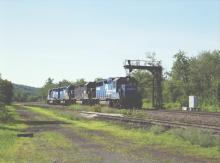 GP40-2 3354 leads a 4 unit light engine set eastward past the gantry signal at State Line at 15:40. This was the last classic signal gantry left on the B&A and with the single-tracking of the B&A became redundant and was removed, hated to see it go!