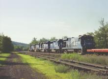 CR 1980 in the trail position in PWSE at State Line in Canaan, NY. Nice that TOFC flat was the first car in the train.