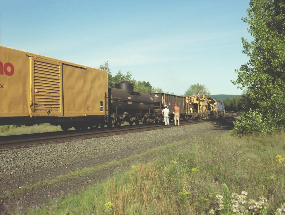After the passage of PWSE, the ballast cleaner has crossed back over to track 1 and resumes his work just east of the State Line crossing in West Stockbridge, MA.