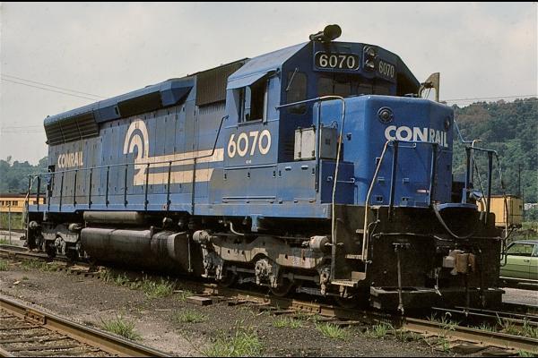 AMT 367 F40PH leads westbound train 43, the "Pennsylvanian", on this snowy day, passing a slow moving empty grain train.