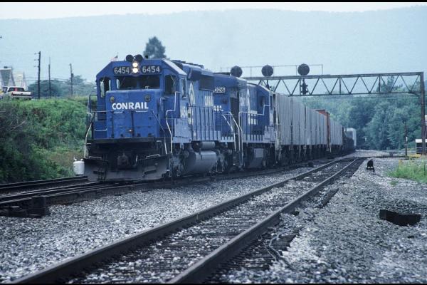 Amtrak train #42, the eastbound "Pennsylvanian", with AMT 268 F40PH pulls to its station stop.