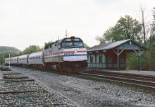 Amtrak train #43, the westbound "Pennsylvanian", with AMT 273 F40PH makes its station stop.