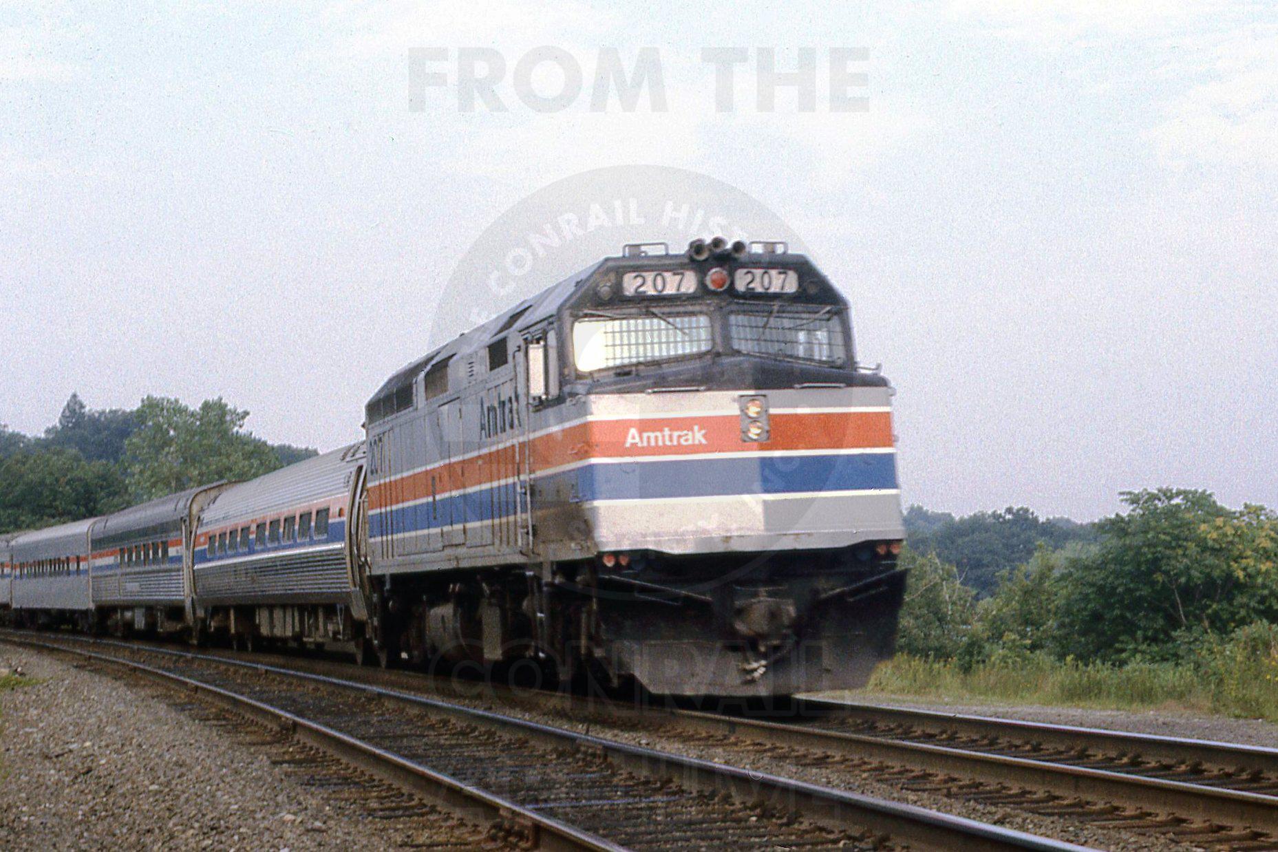 Previous Next Photo By Rich Bowes AMTK 207 EMD F40PH Boston Line Weston MA with AMTK train #449 Year 1980 Original Date 7/1/80 Location Weston MA Subject(s) Amtrak on Conrail Collection CRHS Conrail Photo Archive Contributions