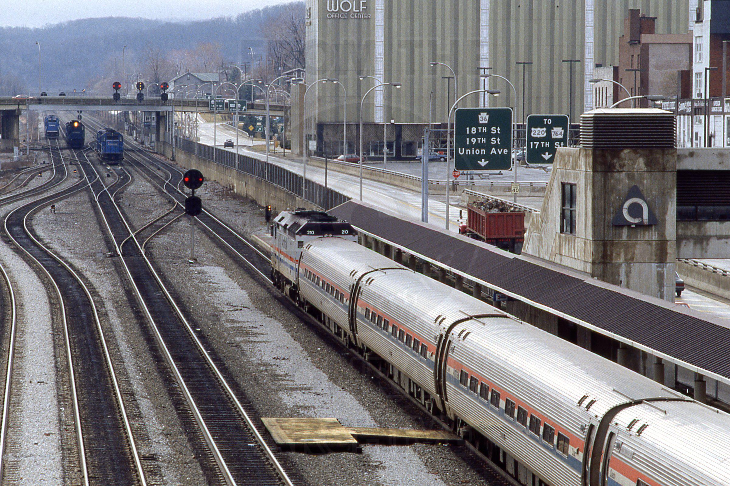 Previous Next Photo By Rich Bowes AMTK 210 EMD F40PH Pittsburgh Line Altoona PA with AMTK train #43 Year 1993 Original Date 3/1/93 Location Altoona PA Subject(s) Amtrak on Conrail Collection CRHS Conrail Photo Archive Contributions