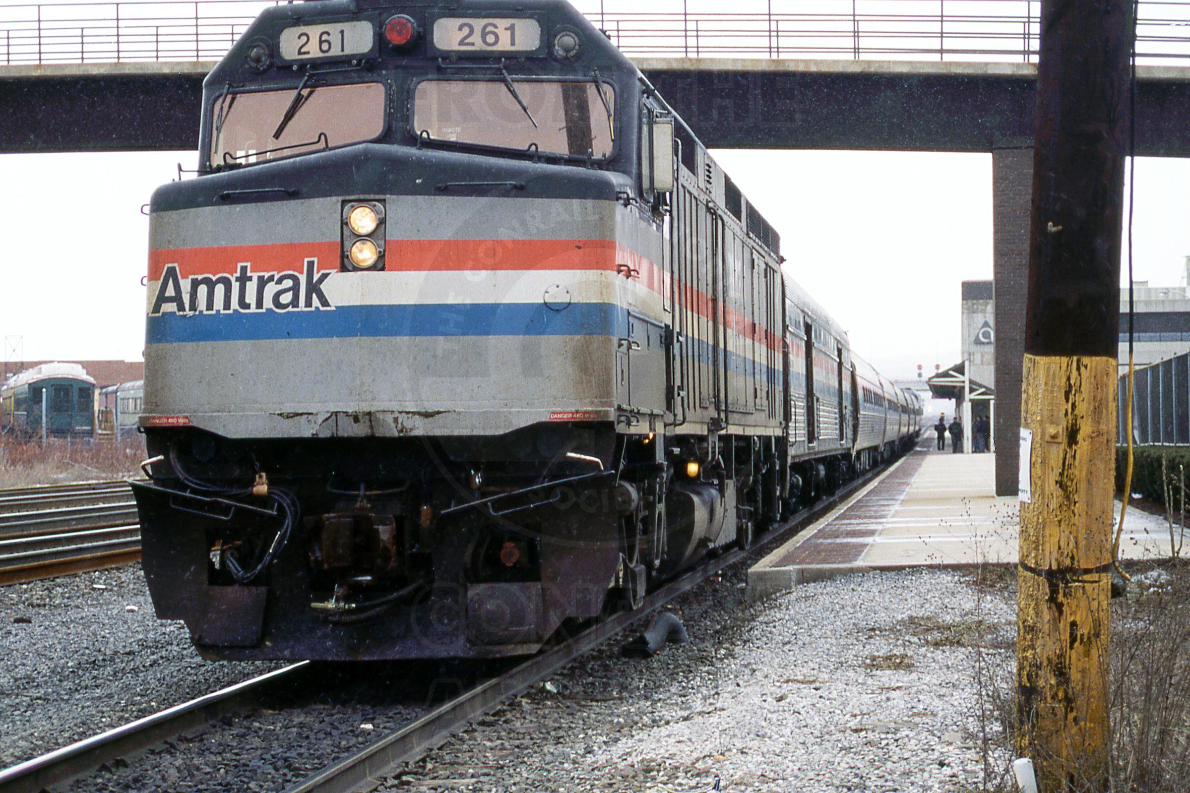 Previous Next Photo By Rich Bowes AMTK 261 EMD F40PHR Pittsburgh Line Altoona MA with train #42 Year 1996 Original Date 3/1/96 Location Altoona PA Subject(s) Amtrak on Conrail Collection CRHS Conrail Photo Archive Contributions