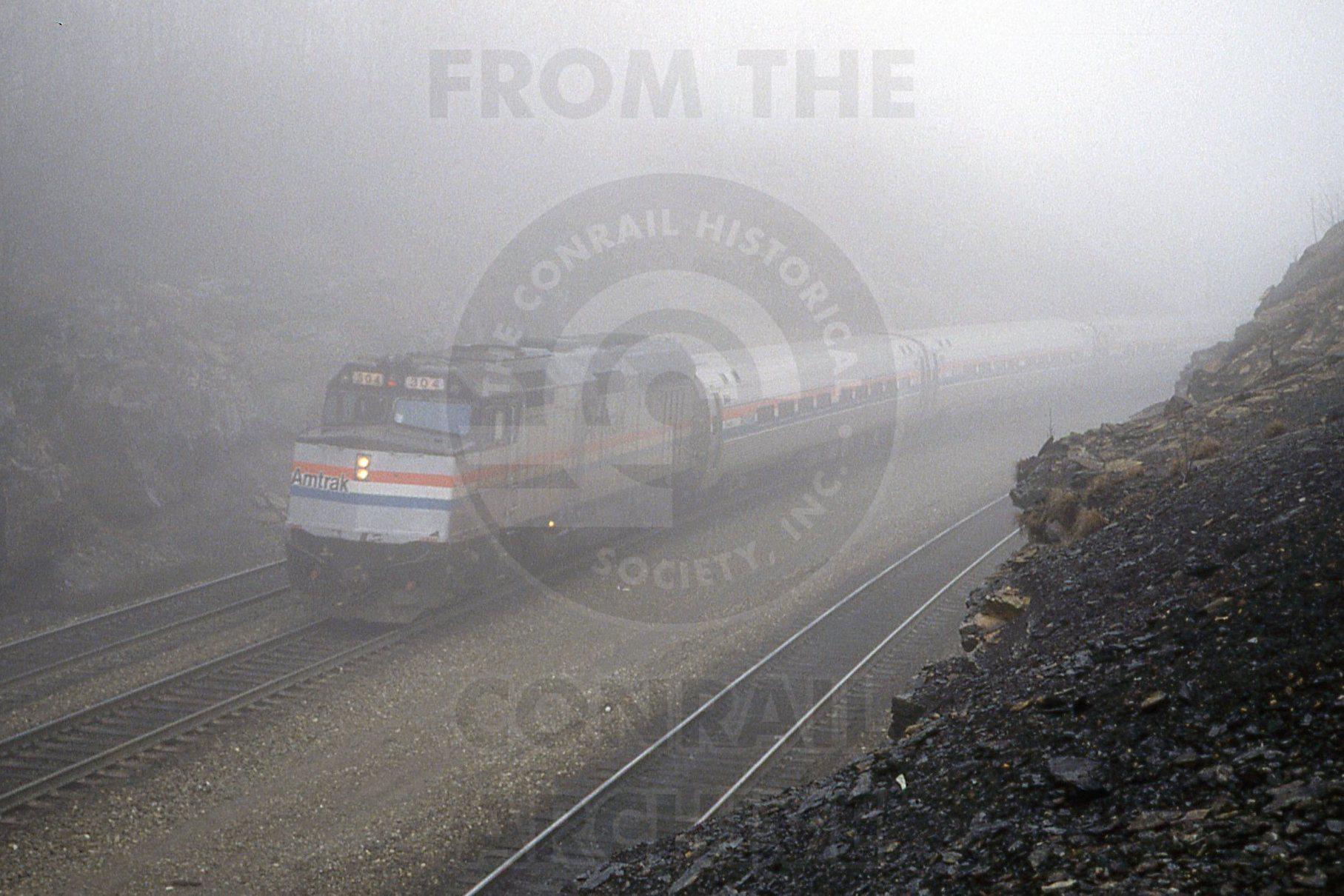 Previous Next Photo By Rich Bowes AMTK 304 EMD F40PH Pittsburgh Line Allegheny Twp PA with AMTK train #43 Year 1991 Original Date 4/1/91 Location Allegheny Twp PA Subject(s) Amtrak on Conrail Collection CRHS Conrail Photo Archive Contributions