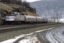 Previous Next AMTK 365 EMD F40PHR Pittsburgh Line Allegheny Twp PA with AMTK train #43 Photo By Rich Bowes Year 1992 Original Date 2/1/92 Location City Allegheny Twp PA Subject(s) Amtrak on Conrail Collection CRHS Conrail Photo Archive Contributions