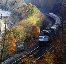 Previous Next Photo By Rich Bowes AMTK 402 EMD F40PHR Pittsburgh Line Spruce Creek PA with AMTK train #43 Year 1993 Original Date 10/1/93 Location Spruce Creek PA Subject(s) Amtrak on Conrail Collection CRHS Conrail Photo Archive Contributions