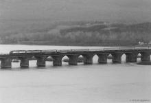 After combining NYC and Washington, DC sections and switching from GG1s to F40PH & E9B diesel power in Harrisburg, Amtrak train 31, the National Limited, crosses Rockville Bridge on its way west to Kansas City, Missouri.