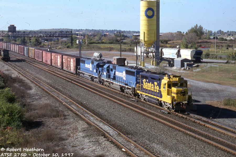 Previous Next ATSF GP30 2750 leads Conrail SD50s 6746 and 6716 through Syracuse, NY on a beautiful, sunny day. Photo By Robert Heathorn Year 1997 Original Date 10/10/97 Location City Syracuse NY Additional Galleries Robert Heathorn's Conrail Subject(s) Foreign Power on Conrail Collection CRHS Conrail Photo Archive Contributions
