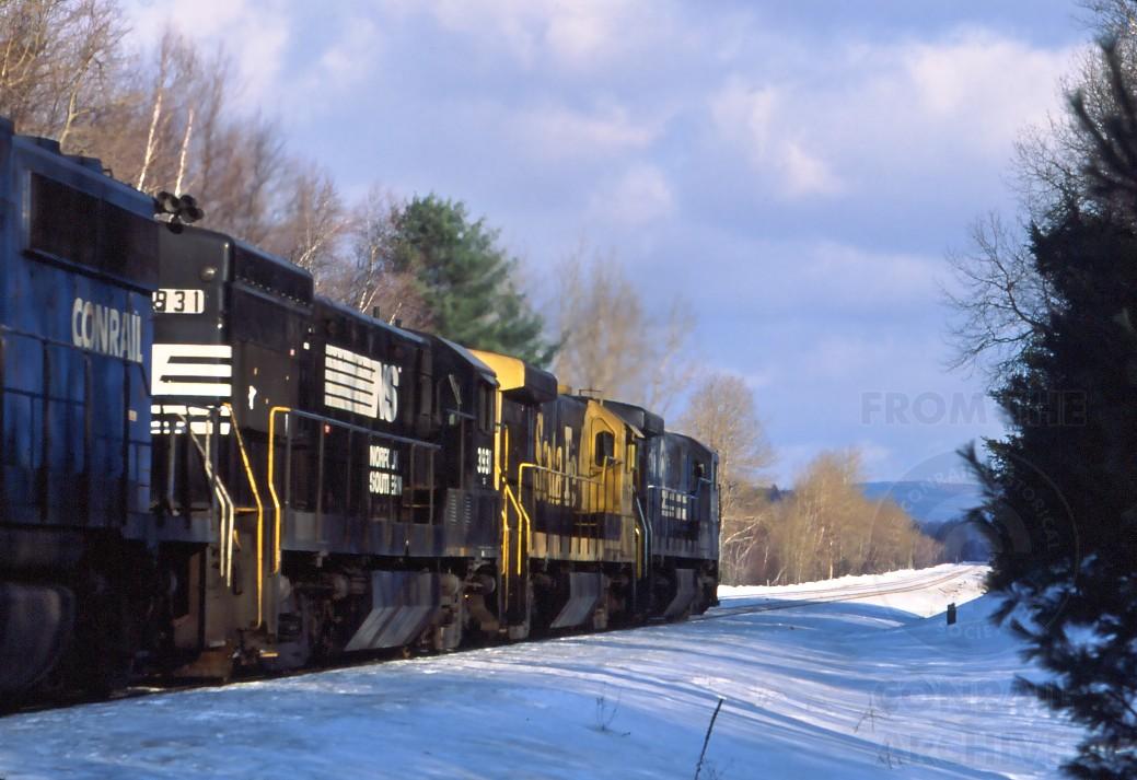 TV-9 going away down the tangent across the Hinsdale flats and a little better look at the "outlanders", NS U23B 3931 and SF B23-7 63x5, couldn't read that third number.