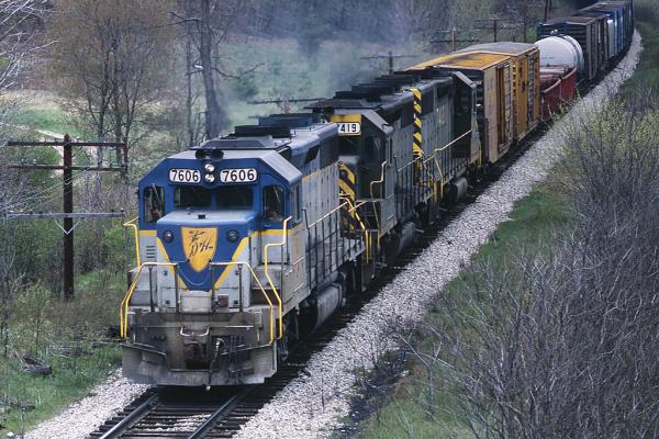 OK...I'm cheating; this is not a Conrail movement. This was a Norfolk Southern movement on Conrail in 1991. This short train came east on the 4C line (now CSX) and pulled to a halt for the night. The train is an NS geep, a gondola spacer, a colorful Schnabel car with an equally colorful, yet contrasting, generator, and two cabooses.