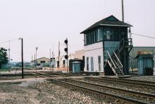 View looking west at BO Tower, double track Amtrak Line crosses two Conrail Lines -- former NYC (LS&MS) and former PRR (GR&I) at Kalamazoo, MI in June 1993. Doug Davidson photo with permission