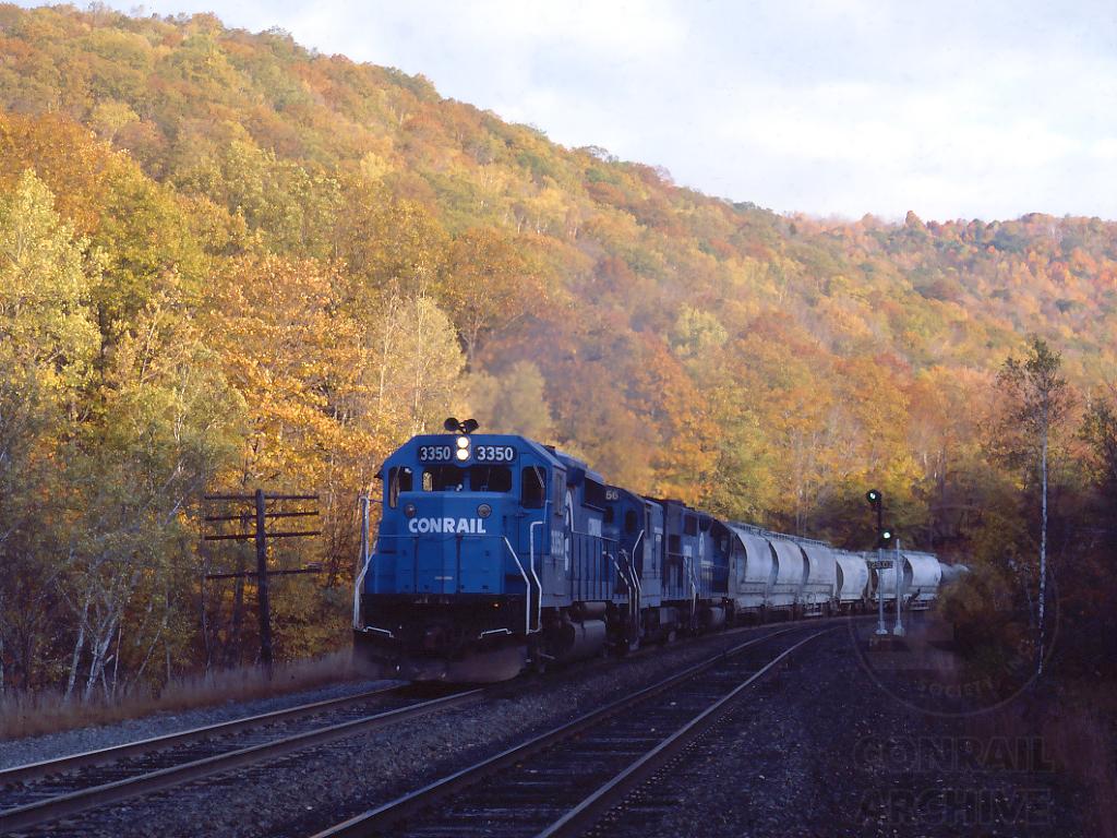 At 08:14, it's a little too early for a well-lit photo at MP 129 in Becket, MA. The sun hasn't had a chance to get down into the valley to light up westbound BOEL as he works up the east slope, so we'll take off and try for another shot further up the hill.