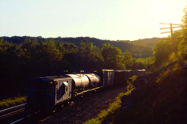 SD45 6153 shoves hard on ex New Haven NE-5 buggy 23801. There are times when dirty is good. Clean, glossy black in bright sunlight doesn't photograph worth a damn.