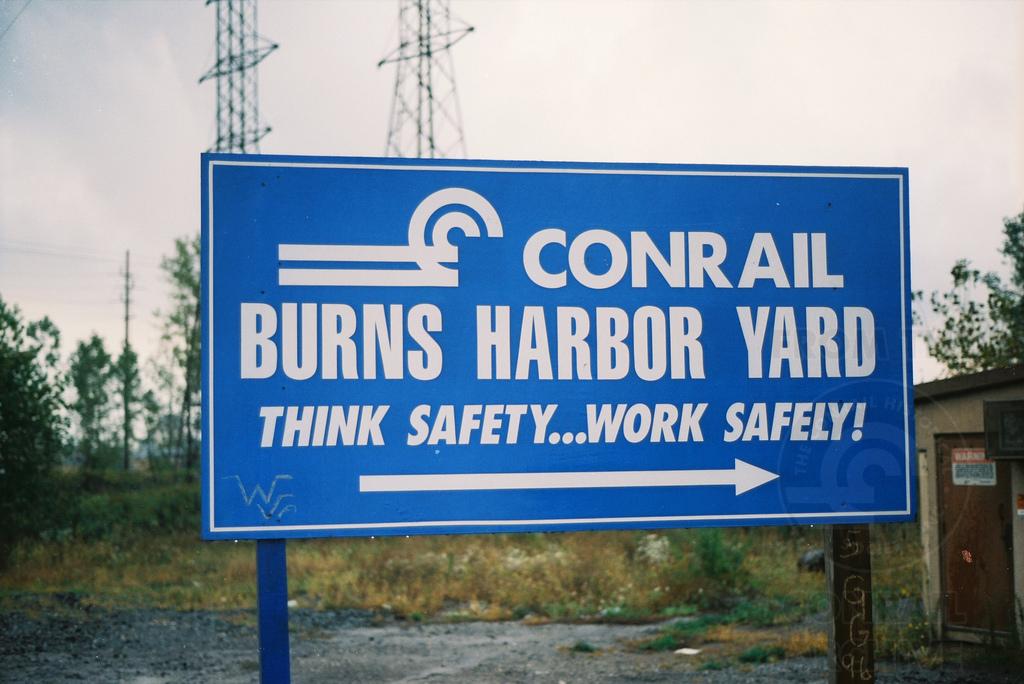 Sign marking the entrance to the Conrail yard at Burns Harbor, IN in October 1998. Doug Davidson photo with permission