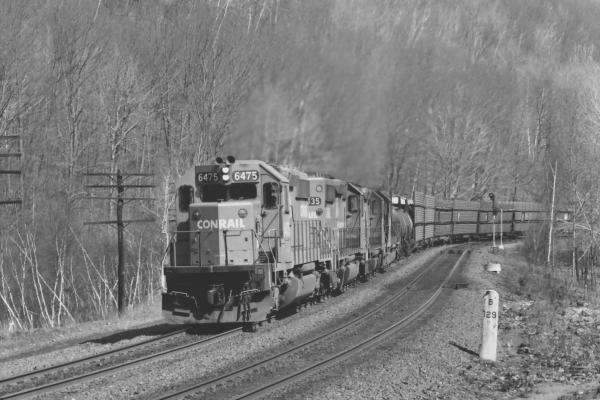 BLR173's herd of four axles continue pounding upgrade at Bancroft, MA.
