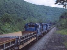 Previous Next Photo By Carl Weber BWF774 heading away downgrade. Year 1982 Original Date 8/6/82 Location Middlefield MA Location Details west of MP 130 Additional Galleries Carl Weber's ConRail Action Sequence Photography Collection CRHS Conrail Photo Archive Contributions