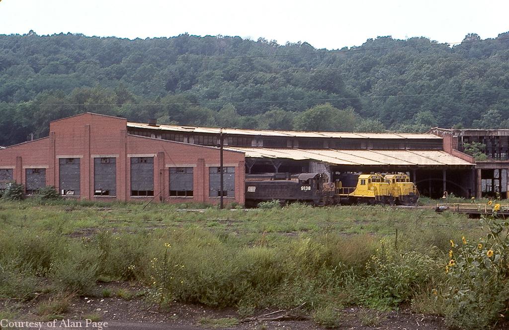 Cleveland Electric EMD units joined the typical Alcos and PC SW900 9138 at the Mingo Junction roundhouse in August, 1977.