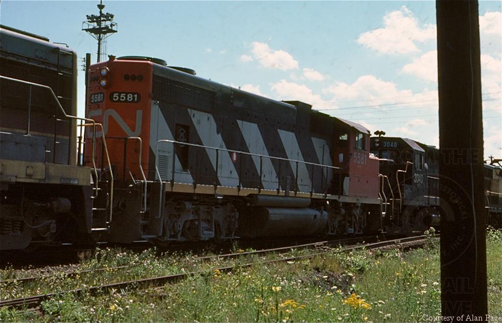 The next day at Conway engine terminal, both CN 5581 and U25B 2571 were seen mixed with other power, ready for another assignment.