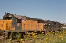 CR GP-38-2 8087 leads leased C&NW GP-35 830 as they roll by the Juniata shops deadline in August, 1977.
