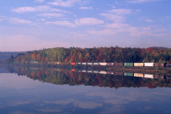 The sun hasn't risen far enough to get all the way into CP 123 at 06:53 as TV8B slithers into the new interlocking in Chester, MA. This location had been the eastern limit of Rule 291 signaling over Washington hill when the route was still double track/ABS. Note the naked signal masts in the middle distance which once held the Automatic Block signals.