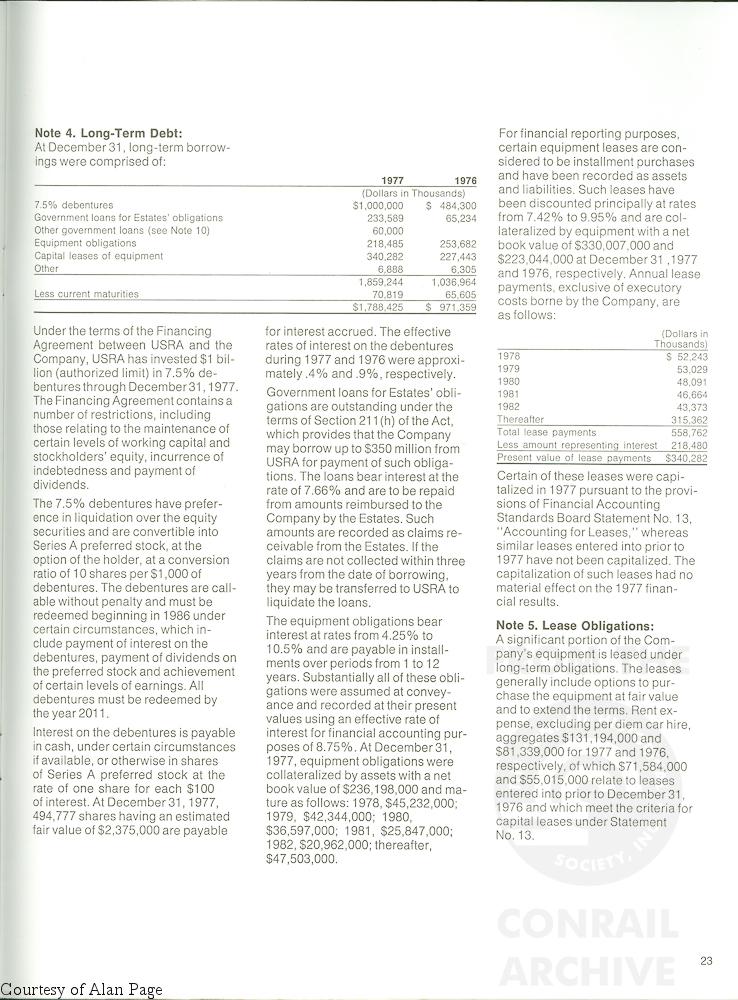 Previous Next Conrail Annual Report 1977: page 23 Long Term Debt Photo By Alan Page Year 1977 Collection CRHS Conrail Photo Archive Contributions