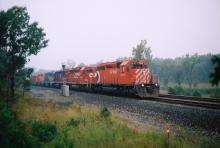 An eastbound CP trackage rights train led by CP SD40-2 5642 is seen on Conrail's Chicago Line approaching Miller, in September 1998. Doug Davidson photo with permission