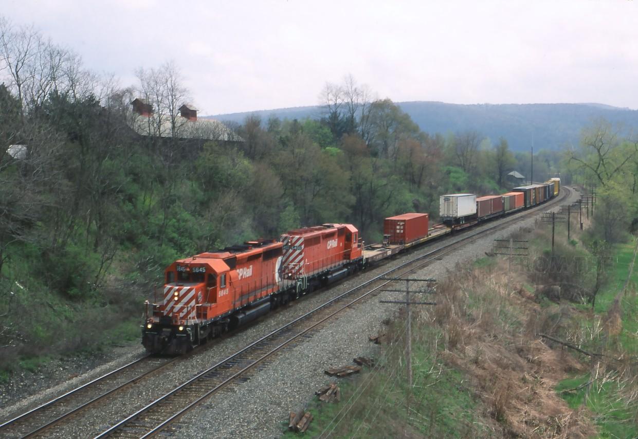 DHT9 at Chemung, NY. on 5/5/93. The old station can be seen near the rear of the train on the curve in the distance.