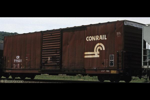Conrail 077520 is seen at East Conway, PA. Looks like the shop crew who re-numbered the car took the computer-generated 6-digit number a bit to.o literally. Car is ex CR 278857/PC 278857.
