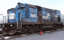 CR 1642 is seen at Stoney Creek Yard in Chester PA on 2/14/98. Note unit carries Labor Management logo that is more commonly found on the B40-8s.