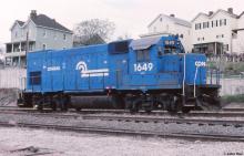 Previous Next Photo By John Pari CR 1649 is seen at Jeannette, PA on 5/1/1988. Year 1988 Original Date 5/1/88 Location Jeanette PA Equipment Type EMD GP15-1 Conrail Number 1649 Additional Galleries John Pari's Conrail Locomotives Collection CRHS Conrail Photo Archive Contributions