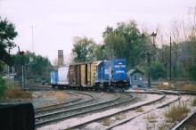Once the BNSF Connection Track was constructed and connected to the CJ at Brighton Park, IL Conrail local freights began using it to connect with the former PRR Panhandle Line. Fomerly, they used the crossovers at 37th Street. Here, the Conrail local freight led by GP15-1 1667 leaves the CJ for the Panhandle Line in November 1998. Doug Davidson photo with permission