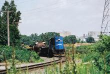 After a short wait, Conrail GP15 No. 1680 came creeping around the curve with the bottle cars, but it stopped short of the home signal. Doug Davidson photo with permission
