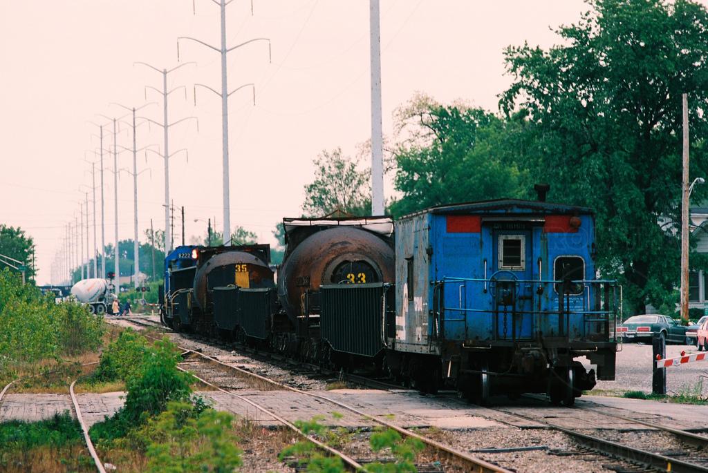 An Conrail 'bottle train" heads east on the former Panhandle at Riverdale, IL, in June 1986 with caboose 18193, a class N6A. Doug Davidson photo with permission