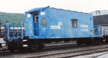 Previous Next Photo By Jeff Weaver CR 18200 is seen at Hollidaysburg, PA on 6/7/97. Car is ex PC 18200/NYC 18200, built 11-45 and was deleted by CR on 9/24/98. Year 1997 Original Date 6/7/97 Equipment Type N9 Class Caboose Conrail Number 18200 Collection CRHS Conrail Photo Archive Contributions
