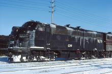 A very icy CR 1879 (ex PC 1879, PC 754, nee DRGW 5754) is at Cleveland, OH on 1/11/77.