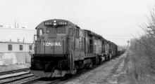 Conrail ELIN 7a heads south near MP-134 on the Marion Branch bound for Anderson, then onto to Indianapolis on Feb. 27, 1981. Kevin Nelson photo with permission