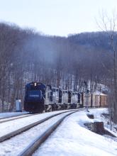B23-7 1916 leads SPSE into Bancroft at 09:04, 15 minutes behind preceding TV-9X.